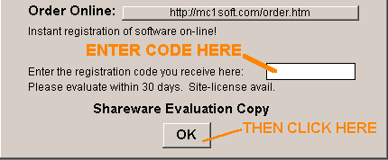 From menus select help, then select about/register and enter code in space as shown in figure at left.